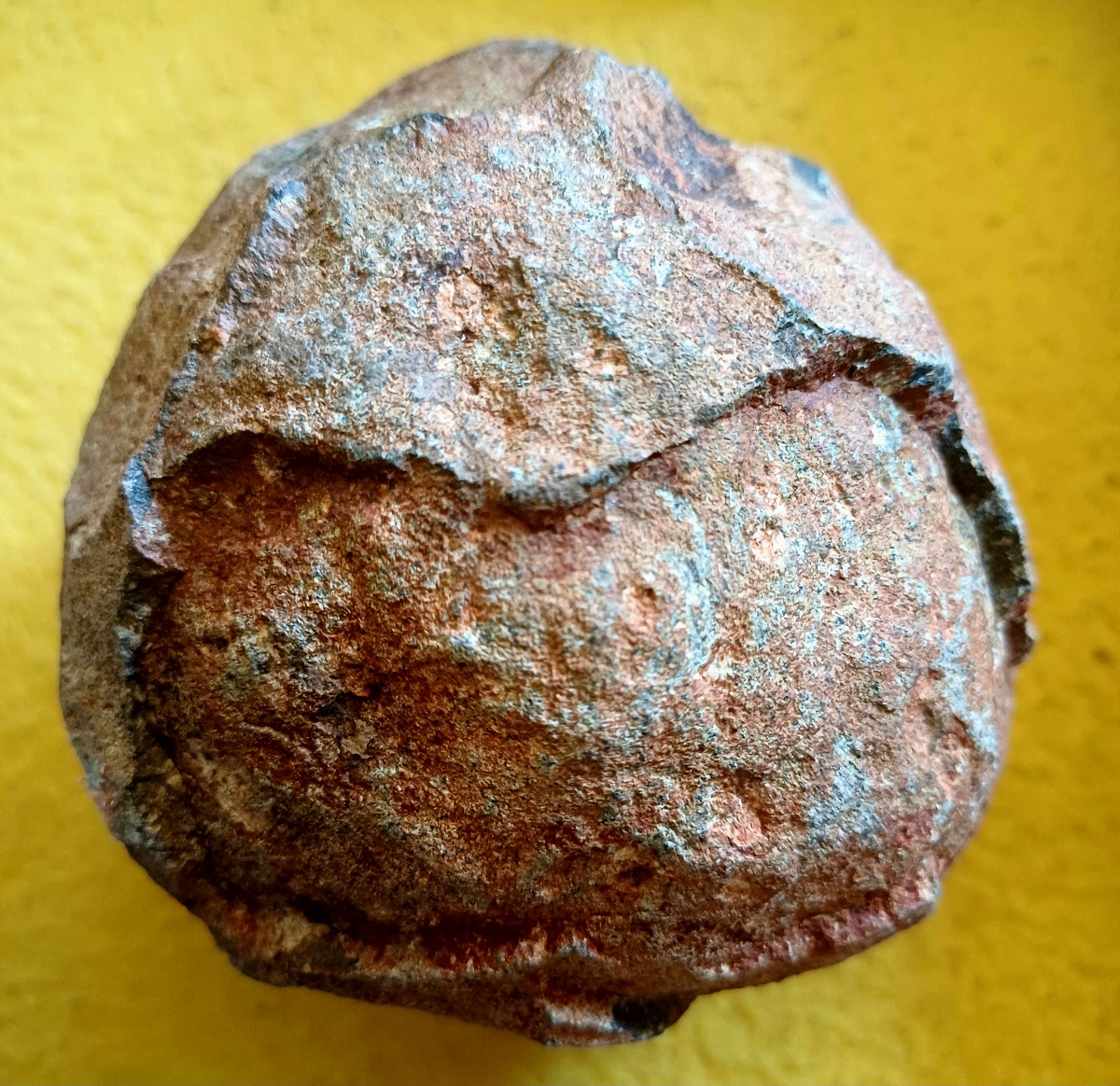 Ich experimentierte weiter und kam schließlich zu dem Entschluss, den Körper aus Kupferblech zu hämmern. Online bestellte ich zwei runde Kupferplättchen mit einem Durchmesser von 60 mm und einer Stärke von 0,5 mm, schnitt die Grundform zurecht und hämmerte sie in die konvexe Form, die so ein Käferkörper nun mal hat. Auch den Brustschild mit Kopf schnitt ich aus dem Blech und bog sie rund. Nun begann der Korrosionsprozess.